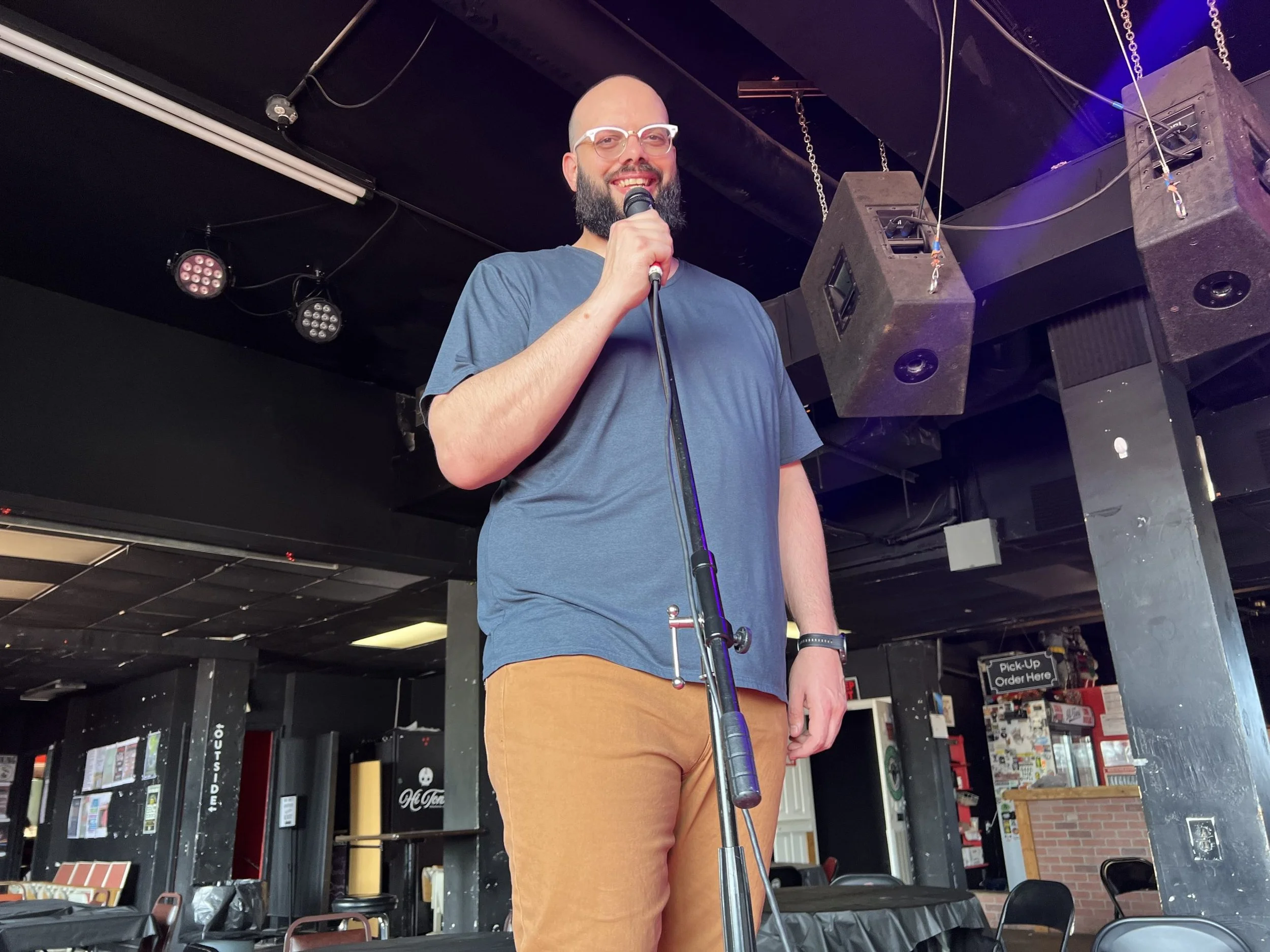 Benny Elbows is a comedian from Memphis, TN and is the Guinness World Record holder for longest stand-up comedy show by an individual (40 hours 16 mins 48 seconds). His comedy blends self-deprecation, absurdity, and cleverness with his experiences as a literal giant, and has earned him first runner-up “Funniest Person in Memphis” and a nomination for Memphis Flyer’s “Best of Memphis”. He has been featured on the Eastside Comedy Festival, Tim Northern Comedy Festival, Live Laughs Comedy Festival, Paul Bunyan Comedy Festival, and the World Series of Comedy.